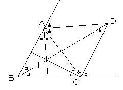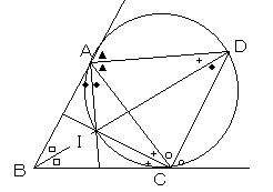 ∠IAD=90°、∠ICD=90°より、4点AICDは同一円上にあります。