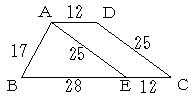 △ABE=√{35(35-17)(35-25)(35-28)}=210