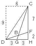 △OADと△OCFは相似で、面積比が9:16なので、相似比は3:4。