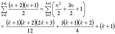 (n+2)(n+1)/2 を n=1〜k+1まで足すと、