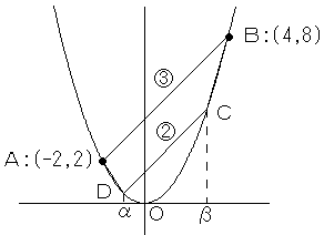 上図のように、点Cのx座標をβ、点Dのx座標をα(α<β)とすると、