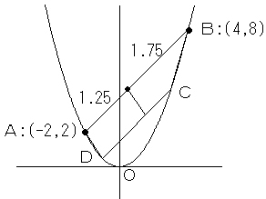 (2) 関数y=x2/2のグラフ上に、4点A(−2、2)、B(4、8)、C、Dがあり、