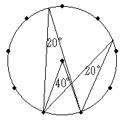 さて、正九角形の場合、1つの辺に対する中心角は40°なので、円周角は20°です。