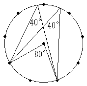 頂点を1つまたいで2点を選ぶと、そこに立つ円周角は40°です。