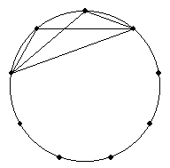 (1)正9角形の、3つの頂点を結んで、三角形を作るとき、鈍角三角形は何個できるか。