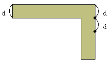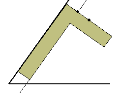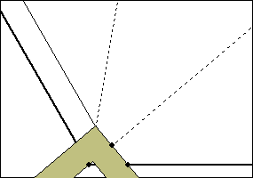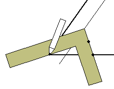 (1) 角を構成する2本の半直線の一方に平行で、 間隔が差し金の幅と同じとなる直線を、三等分する 角の側に引きます。 |