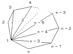 n角形のある1つの頂点から引ける対角線は、n−3本です。