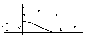 図の点Aと点Bは高さの差がa、水平距離がbであり、その間の曲線は、sin