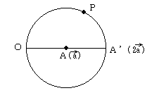 (2)APの長さがOAと等しいので、 |(p)-(a)|=|(a)| または、左図のOPとA’Pが垂直であることより (p)・{(p)-2(a)}=0 下の式は、上の式を2乗すれば得られます。 |
