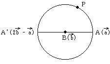 (3)BPの長さがABと等しいので、 |(p)-(b)|=|(a)-(b)| または、左図のAPとA’Pが垂直であることより {(p)-(a)}・{(p)+(a)-2(b)}=0 下の式は、上の式を2乗すれば得られます。 |