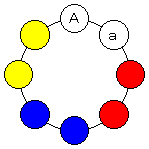 赤、青、黄の3つの組に、(B,b),(C,c),(D,d)