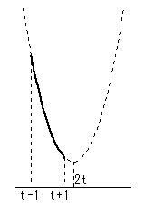 定義域の両端 x=t-1、x=t+1、定義域の中央値