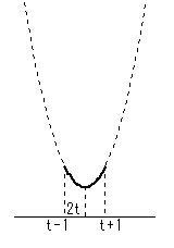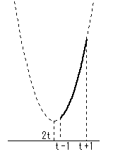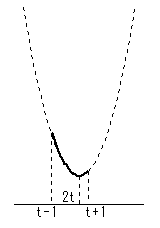 定義域 t-1≦x≦t+1 を考えるとき、最大、最小の位置は