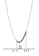 3. t-1<t=2t<t+1 のとき つまり t=0 のとき x=t-1,t+1 で最大 x=2t で最小 |