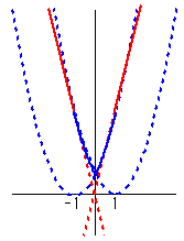 青は放物線、赤は直線である。