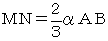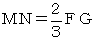 | 図2において、A,B,C,D,EおよびOは正20面体の頂点であり、辺OB,OEの中点をF,G、線分AF,AGをそれぞれ2:1に内分する点をM,Nとします。(点M,点Nは△OAB、△OAEの重心です) このとき、 BE=AB×2α であり、中点連結定理より FG=BE÷2 より、 FG=AB×α また、 より、 正12面体の1辺の長さは、外側の正20面体の1辺の2α/3倍である。・・・・(1) |