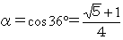 | 辺の長さの比を 1:α とします。 近似値を使うと α=0.8 であり、三角関数を使うと α=cos36° です。 |