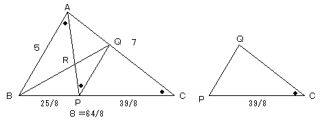 一方、AB//QPより、△ABCと△QPCも相似であり、相似比は、64:39